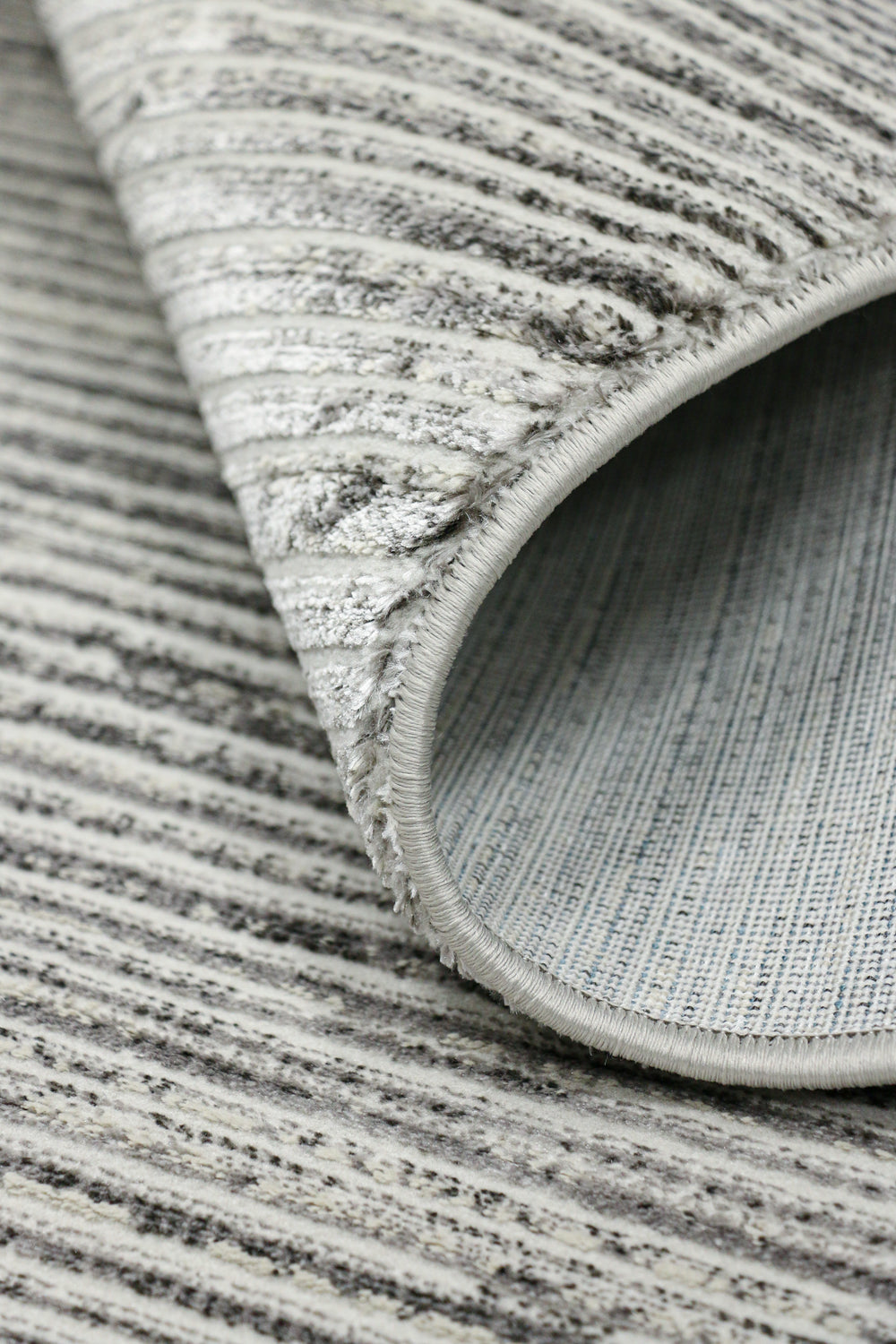 The Glasgow 82 Light Grey rug provides a clean, modern foundation with its pale silver and light grey tones. Its surface features a subtle linear texture with soft, horizontal lines that create a quiet sense of movement across the rug. This minimalist design adds a refined and sophisticated touch, making it a versatile anchor for any room.