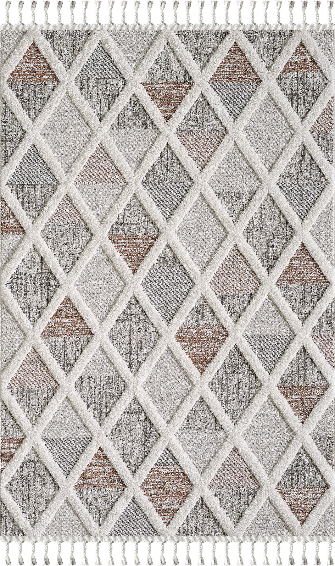 Our Coastal Collection is the perfect way to bring warmth and texture into your space. The large geometric shapes are beautifully woven slightly taller than the looped base of the rug creating depth and character. The multi-weave finish gives your feet a cushioned comfort. The chunky braided fringe makes a real statement and is surprisingly low maintenance and non-shedding. Colours found in this Coastal design include Cream, Light Beige, Silvers, Soft Greys, and Black.