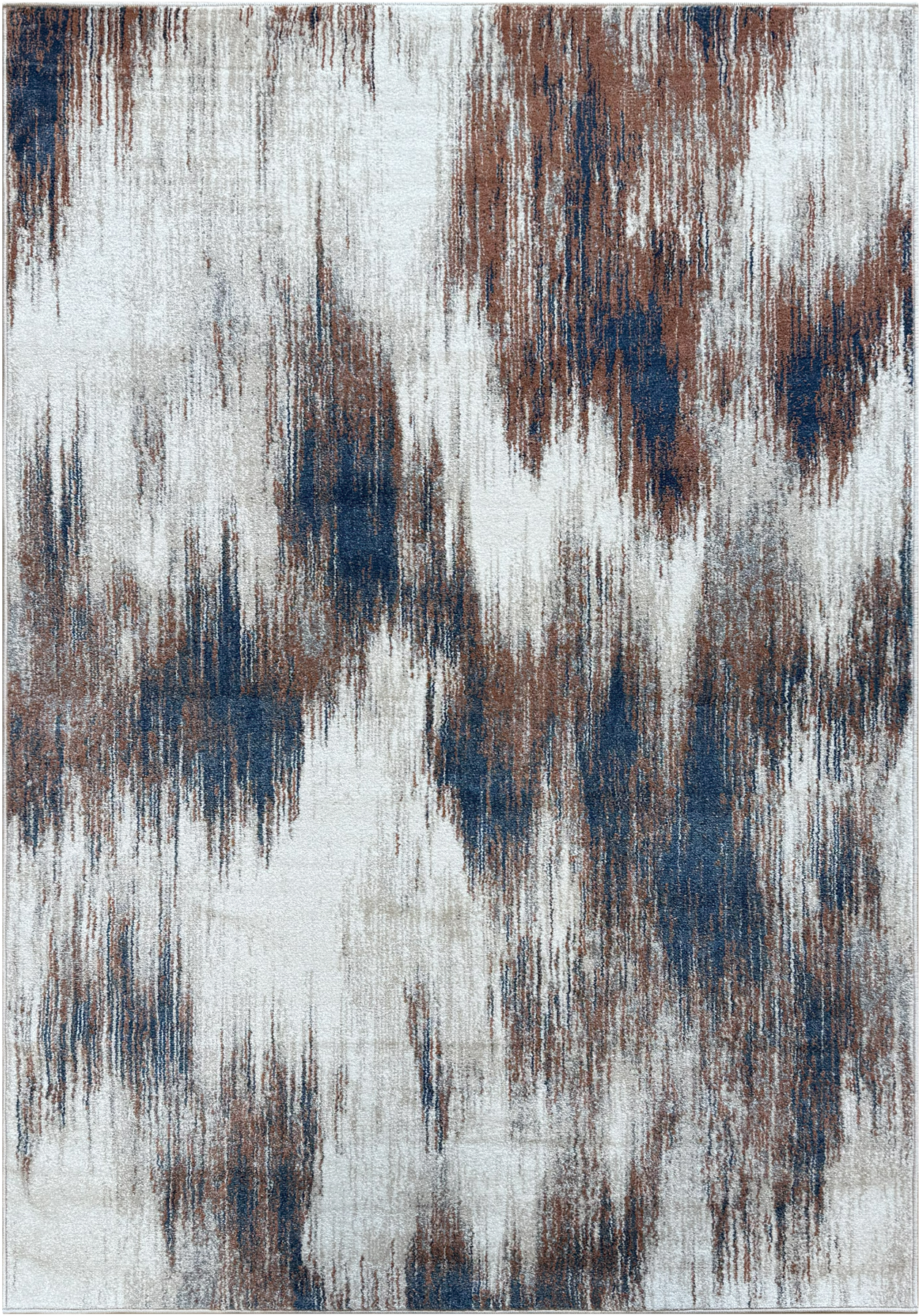 Mojave 493 features bold strokes of rust and navy blue layered across a soft beige background. The abstract pattern creates a sense of depth and energy while still feeling refined and balanced. Its warm and cool tones blend seamlessly to suit both vibrant and neutral spaces.