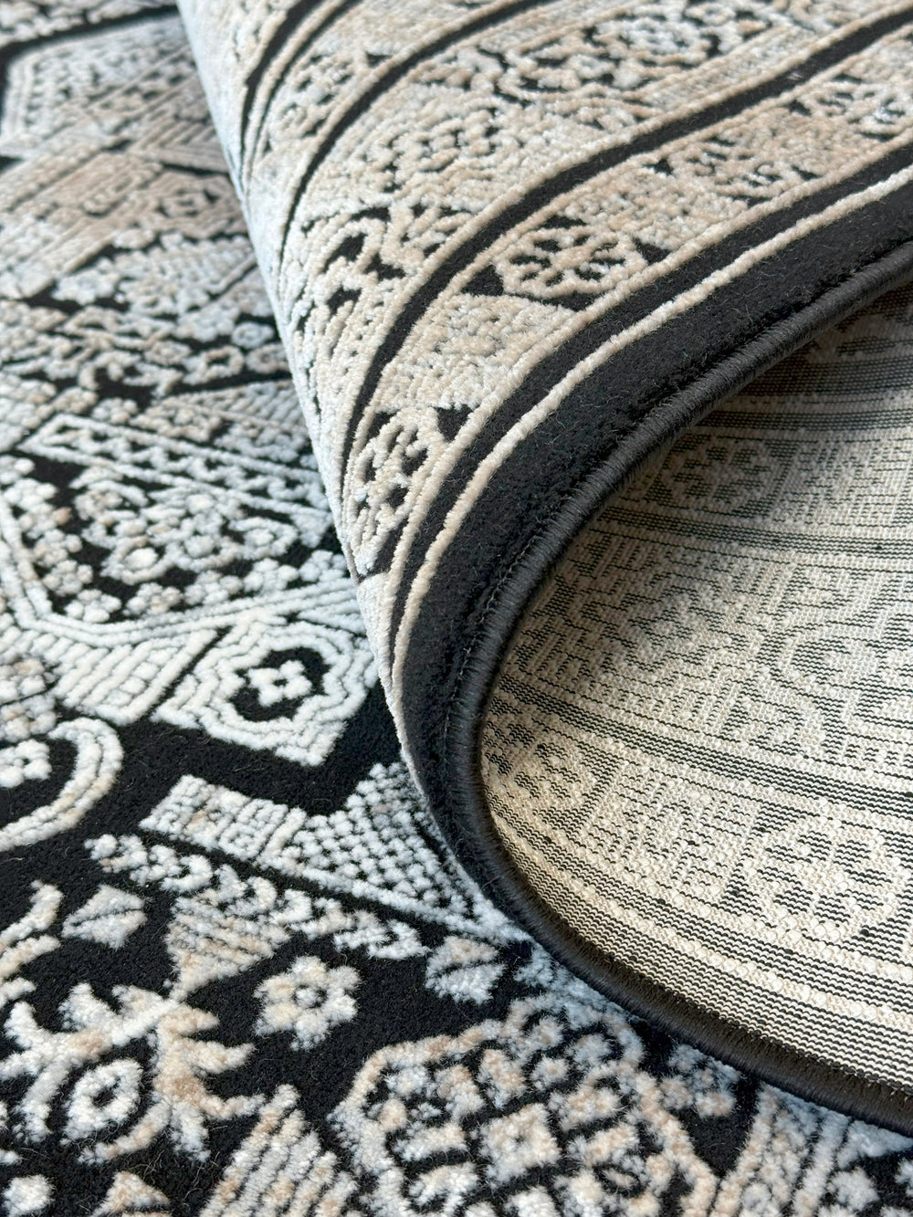Whether your aesthetic is classic, eclectic, or leans towards sophisticated modern, Bethany 678 Black/Dark Beige brings commanding presence, intricate artistry, and enduring quality to your floors.