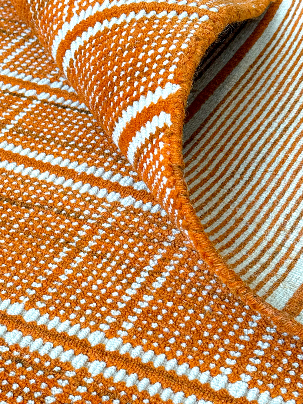Linea Dark Rust showcases a timeless and classic plaid design. The rug’s surface features a rich, warm, earthy orange hue, which serves as a vibrant background for the intricate ivory plaid design. The checkered pattern is created with lines of varying thickness, adding a touch of visual depth and detail. This beautiful and inviting design brings a sophisticated sense of comfort and a traditional feel to any space.
