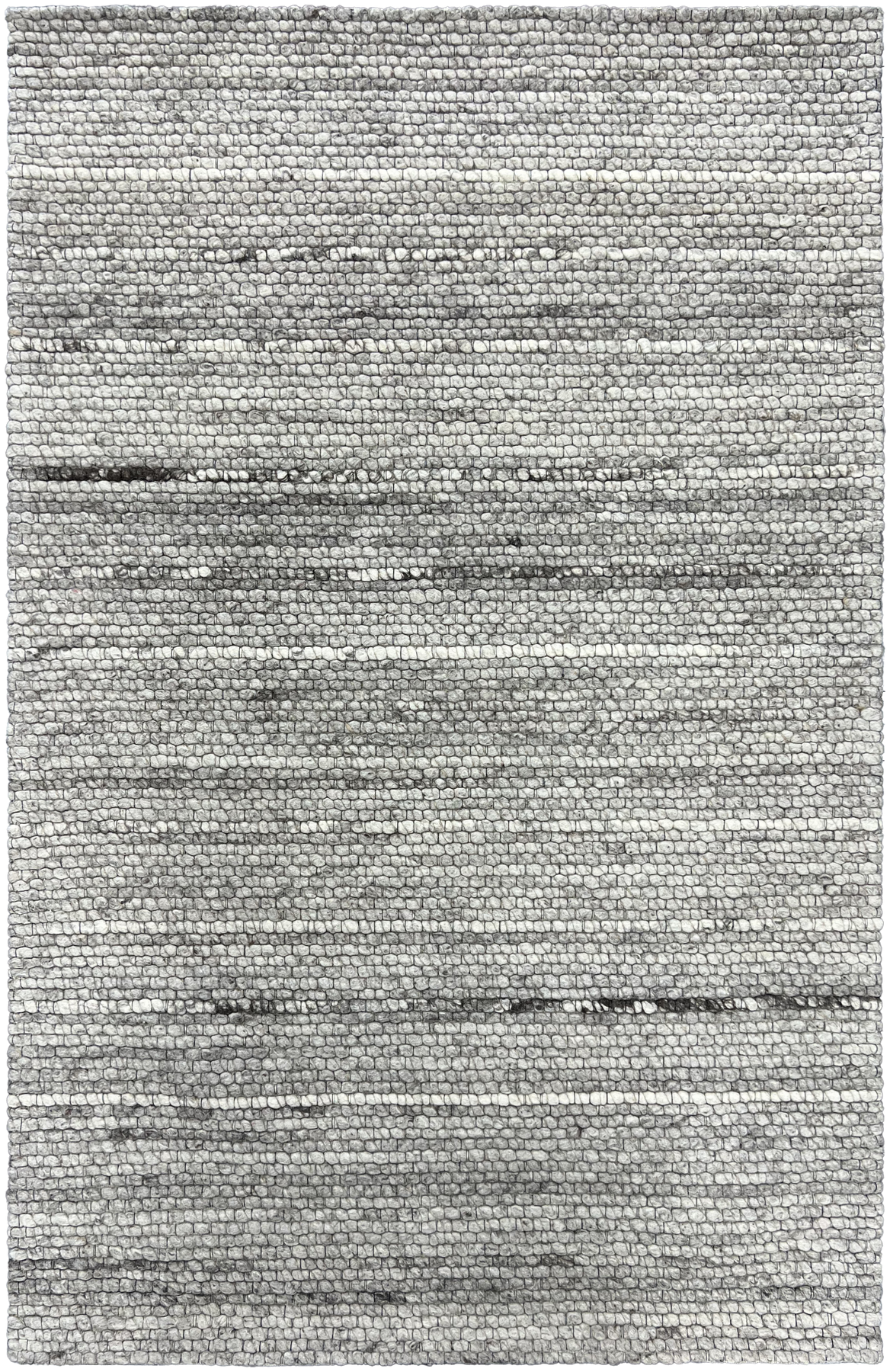 The Rocky Wool Clay rug presents a captivating and tactile experience with its naturally textured design. Its surface is composed of large, plush knots, expertly hand-knotted to create a distinct, rock-like appearance. The multi-tonal clay and grey hues are arranged in subtle horizontal bands, with flecks of darker fibers interspersed throughout to enhance its organic, earthy appeal. This unique construction results in a rug that is both visually compelling and soft underfoot.