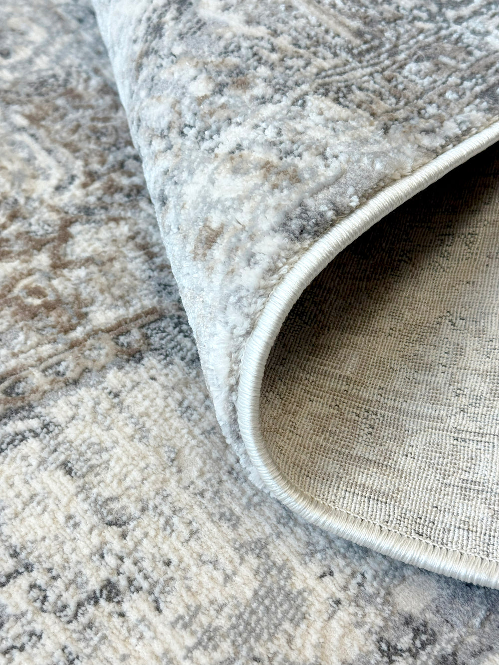 Bethany 687 Cream/Light Beige features a beautifully faded traditional design, evoking a sense of timeless elegance and gentle sophistication. The intricate patterns, in soft hues of cream, light beige, and grey, appear subtly distressed, lending a vintage charm and a relaxed yet refined aesthetic to the rug. The overall effect is one of understated beauty and graceful aging.