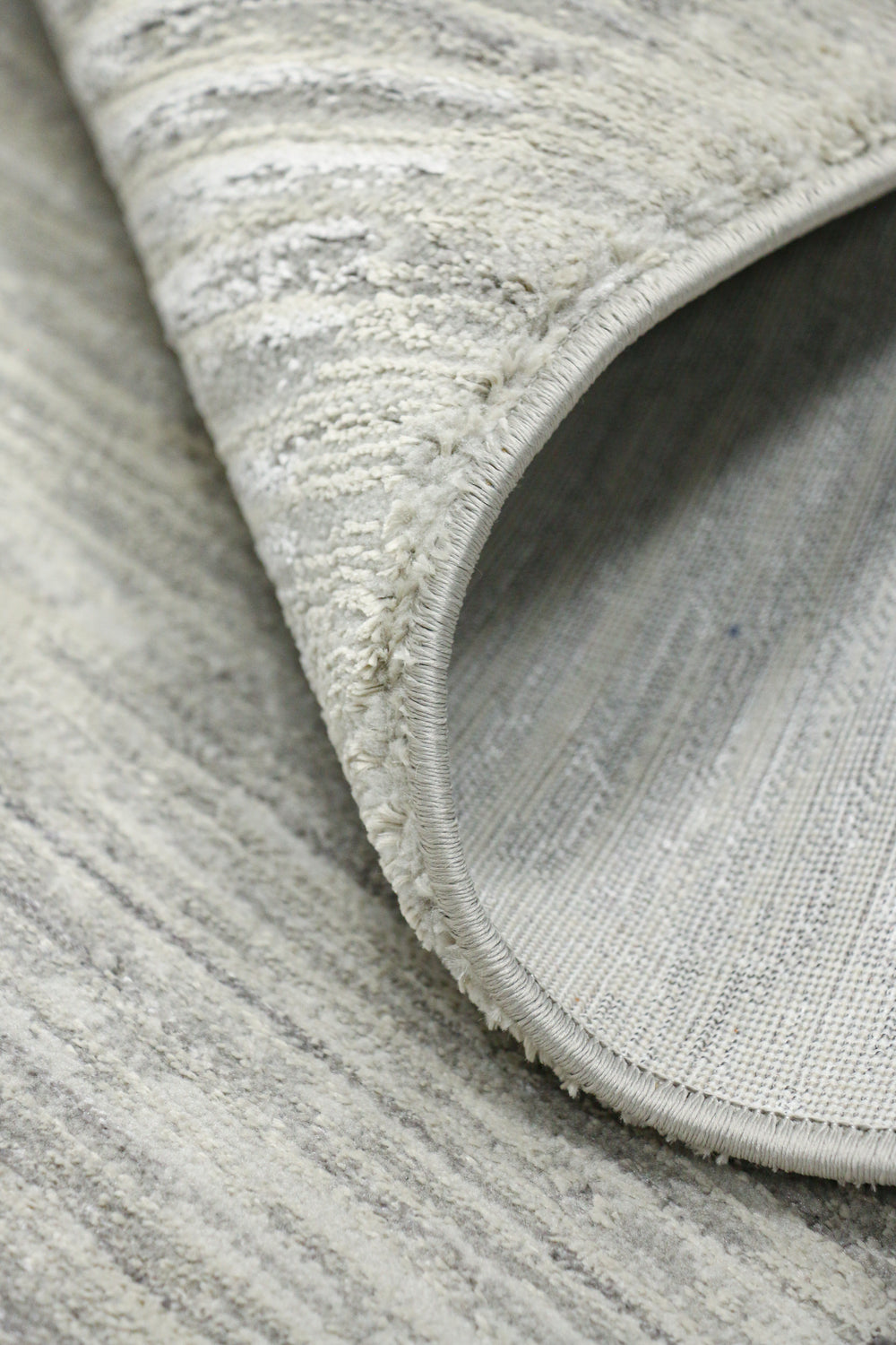 The Glasgow 54 rug offers a timeless and subtly textured aesthetic with a refined linear pattern. Its surface features a multi-tonal blend of soft greys and light beiges, creating a versatile greige palette that complements a variety of modern and transitional spaces. A delicate linear effect runs throughout the main field, while a subtle border in a darker grey tone gently frames the design, adding a touch of definition and visual interest.