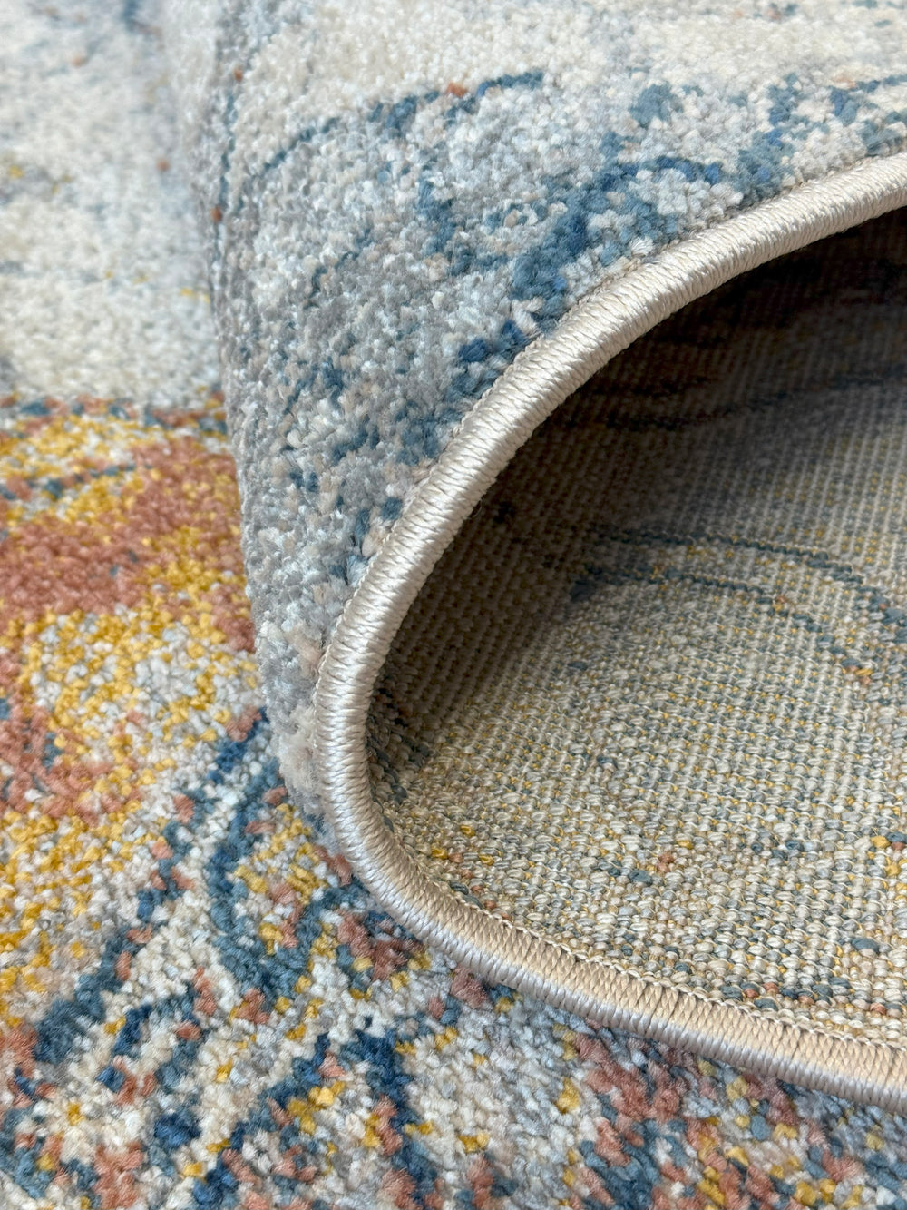 Mojave 479 is a statement piece that blends fluid movement with striking contrast. Shades of deep navy, ochre, rust, and grey ripple across a soft beige and ivory base, creating a layered, abstract effect that feels both bold and organic. The pattern evokes natural elements like wind-blown terrain or mineral formations, adding depth and intrigue to any room.
