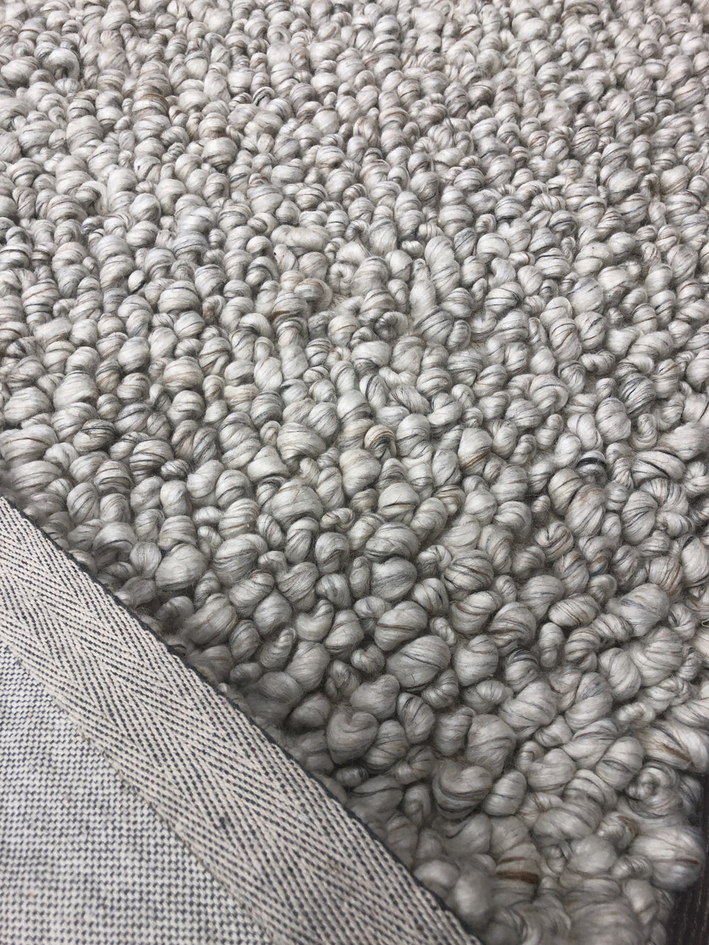 This textured area rug is beautifully handmade with 50% wool and 50% viscose. The backing is 100% cotton. This area rug is masterfully looped individually in various sizes giving the rug a stone like appeal. The blending of the wool and viscose brings in different shades and textures in its colour pallet. This rug is sure to bring in conversation with its unique look and minimalistic appeal.