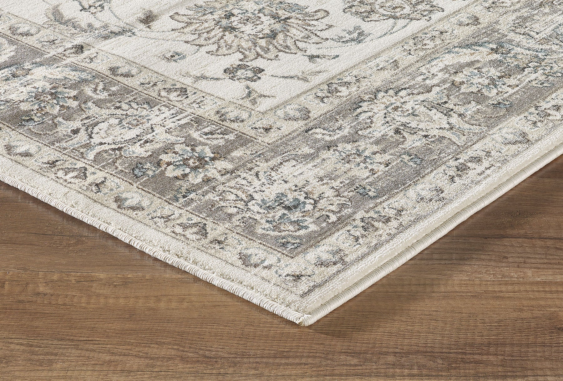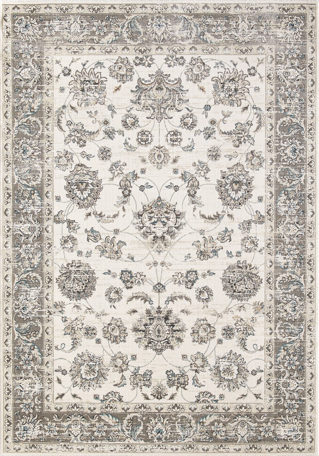 Bring timeless elegance to your home with Meadow 462B, a refined blend of classic Persian-inspired design and modern durability. This rug features a soft ivory base accented with delicate grey and muted teal floral motifs, creating a sophisticated look that suits both traditional and transitional spaces.