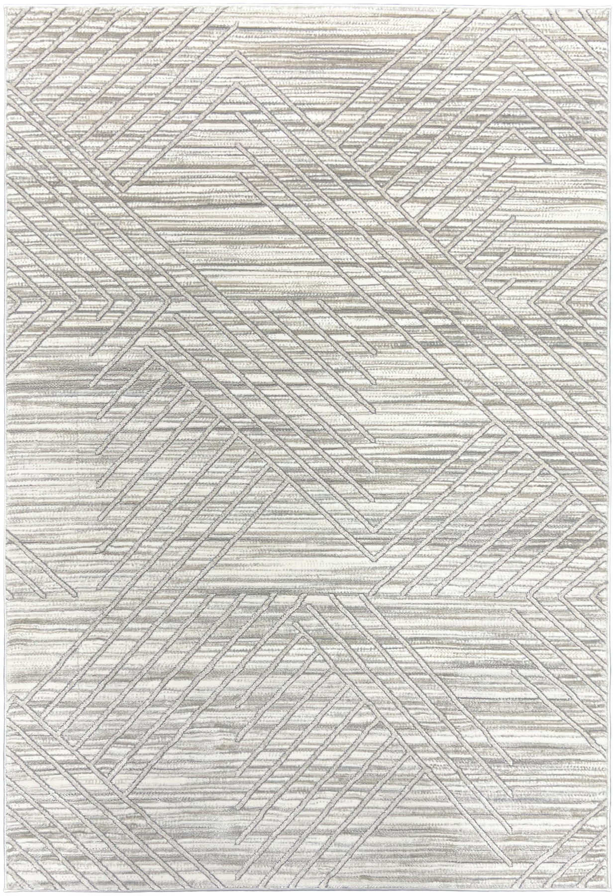 Brooke 189 features a captivating and intricate design, with a layered arrangement of fluid, intersecting lines that create a subtle woven effect across the surface. This unique pattern is rendered in a tranquil palette of cream, light beige, and soft grey tones, resulting in a design that exudes a sense of artistic motion and quiet dimension. It serves as a modern and refined centerpiece for any living space.
