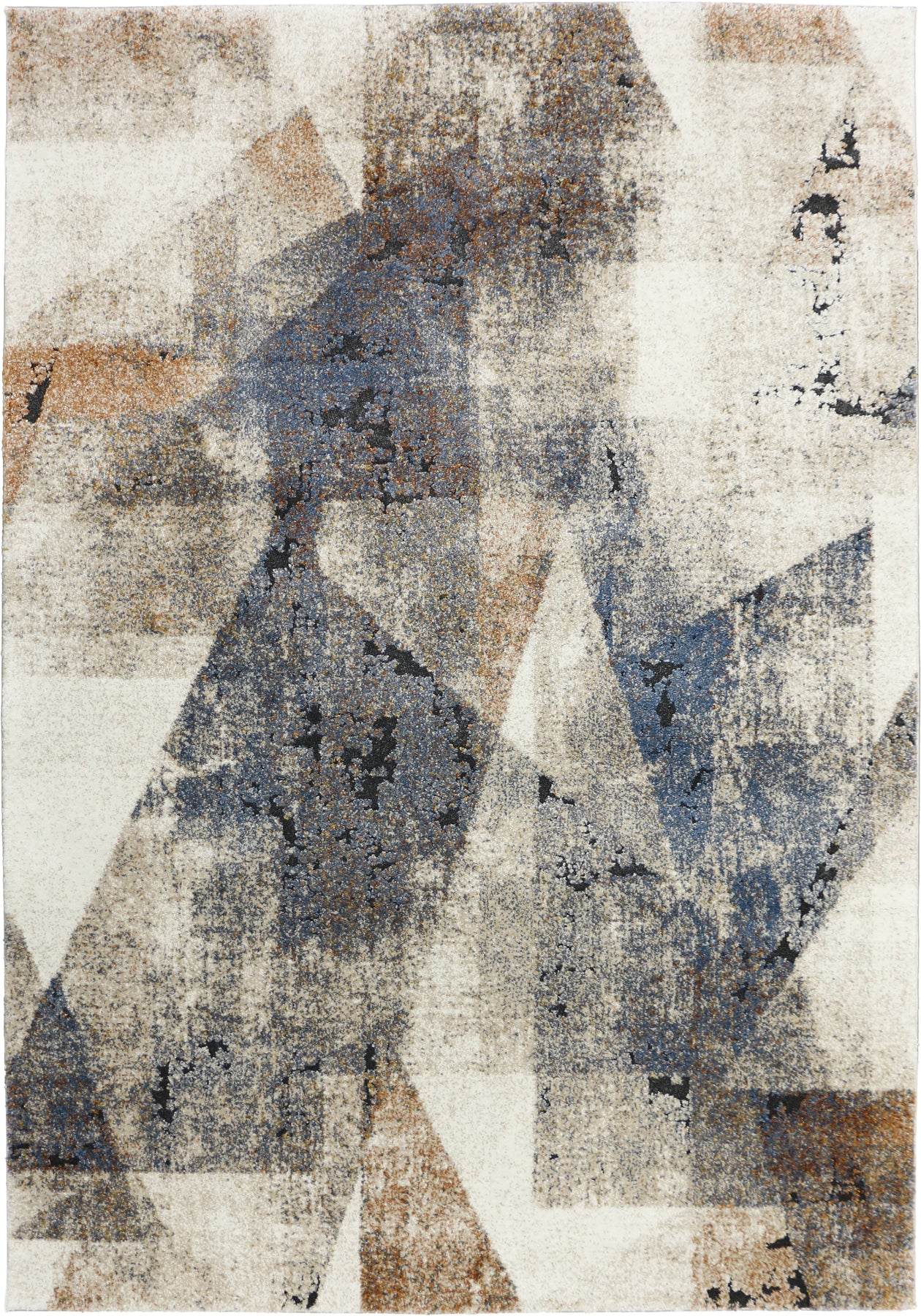 This ultra-soft and plush rug from our Gallery Collection features a stunning abstract art with many neutral tones and punches of subdued blues and oranges. This rug is simple with a statement that will pop in any room.