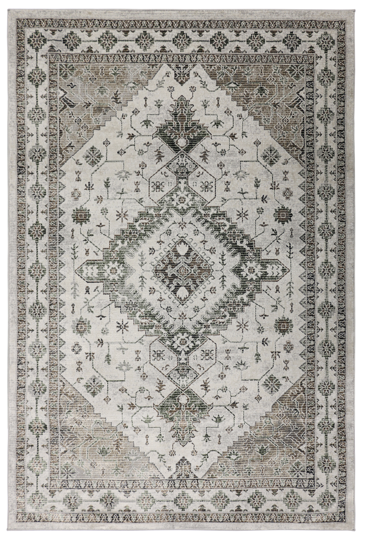 Manchester 98 brings classic tradition into modern spaces with rich detail and understated elegance. Featuring a central medallion and layered borders, this piece blends earthy tones of cement grey, moss green, and warm brown over a soft distressed backdrop. The result is a rug that feels timeless yet fresh, with subtle texture and graceful patterning throughout.