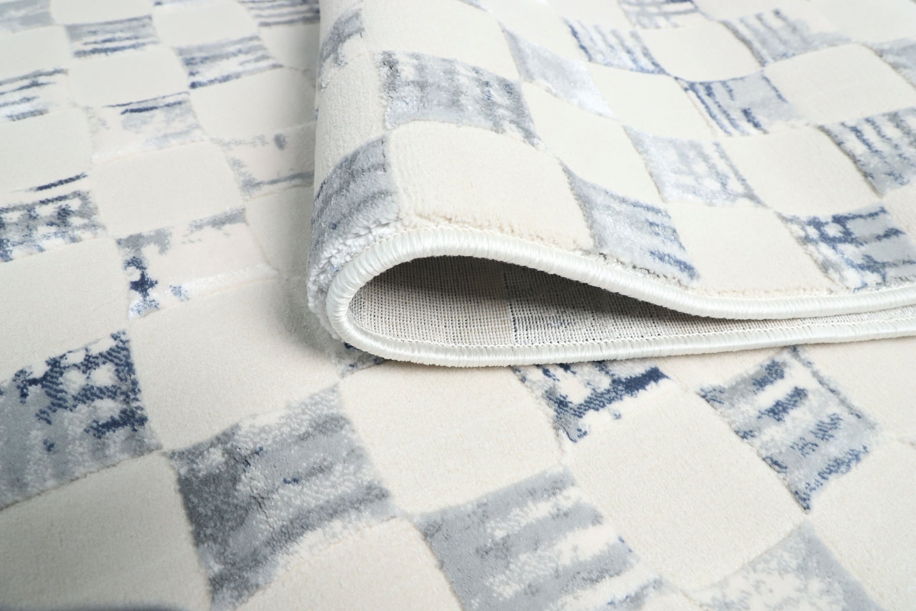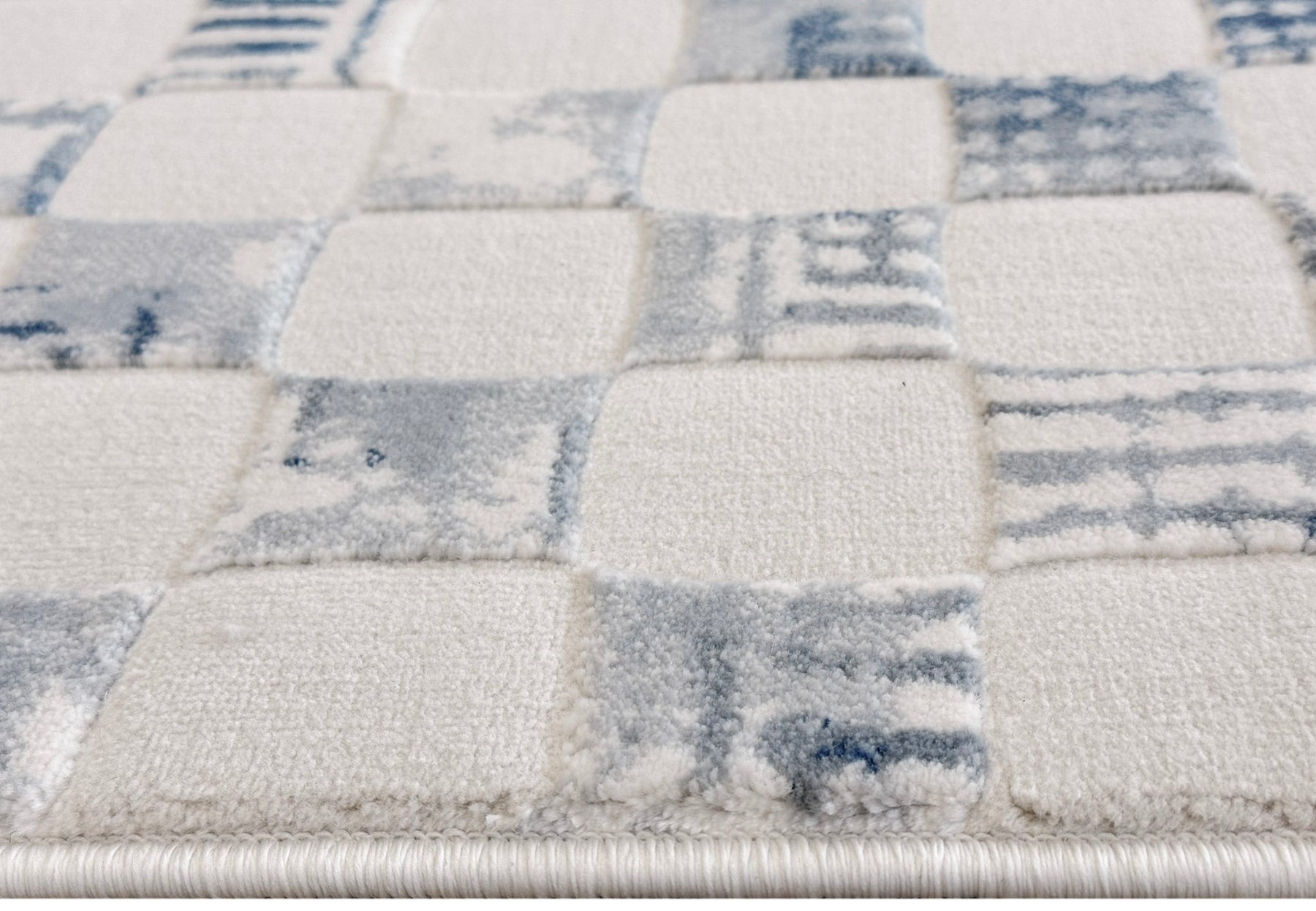 Brooke 751 Cream/Blue features a captivating and modern checkered design with an artisanal, hand-stamped feel. The pattern showcases a series of structured squares in a soft, muted blue, beautifully distressed against a serene cream and ivory background. This layered effect creates a sense of both playful rhythm and sophisticated texture, bringing a fresh, contemporary aesthetic to any space.
