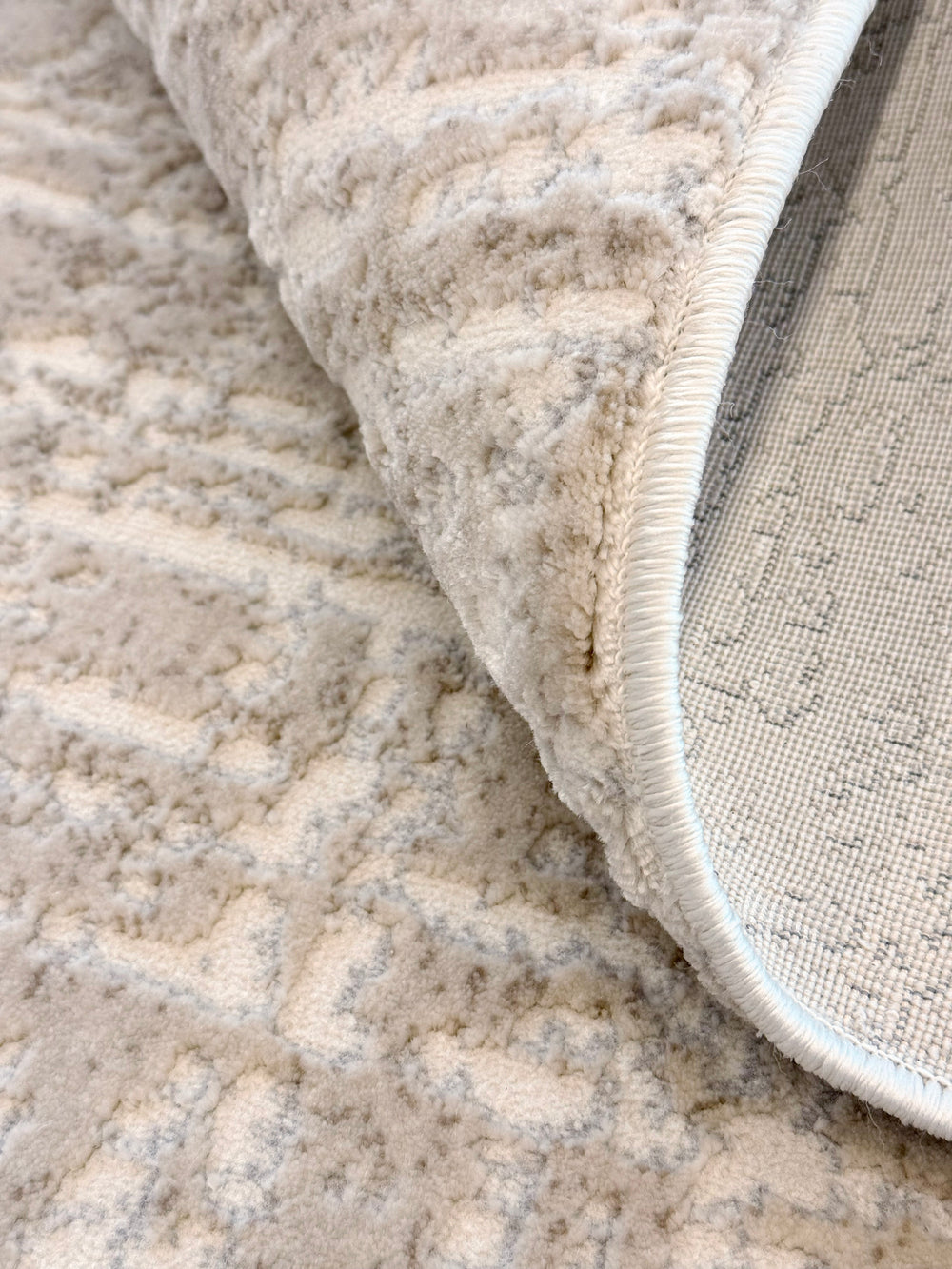 Arlo 2801 abstract rug with taupe, grey, and charcoal on an ivory base