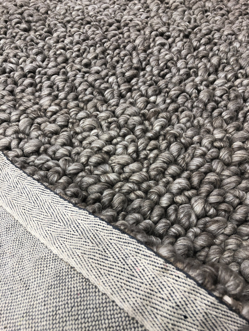 This textured area rug is beautifully handmade with 50% wool and 50% viscose. The backing is 100% cotton. This area rug is masterfully looped individually in various sizes giving the rug a stone like appeal. The blending of the wool and viscose brings in different shades and textures in its colour pallet. This rug is sure to bring in conversation with its unique look and minimalistic appeal.