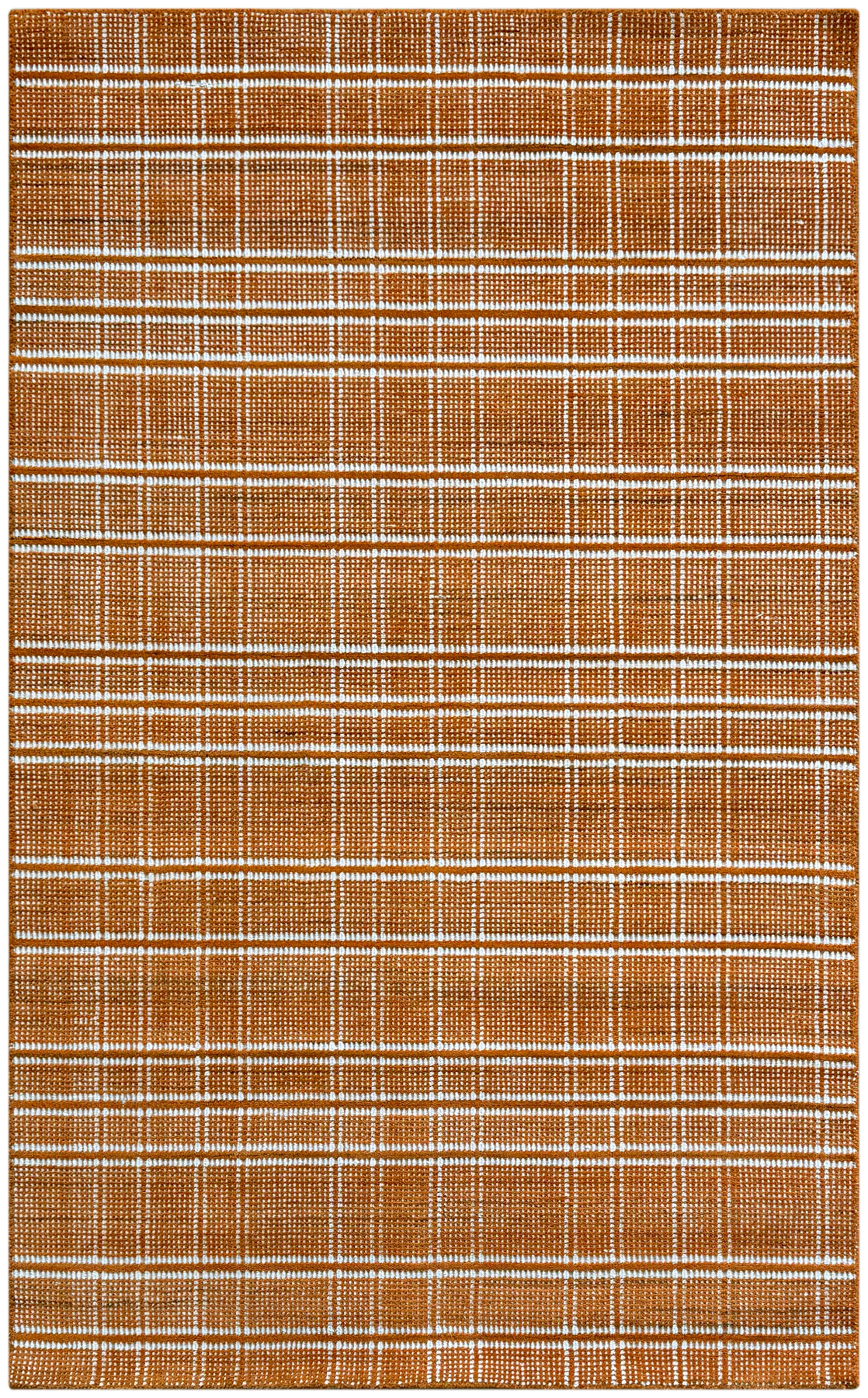 Linea Dark Rust showcases a timeless and classic plaid design. The rug’s surface features a rich, warm, earthy orange hue, which serves as a vibrant background for the intricate ivory plaid design. The checkered pattern is created with lines of varying thickness, adding a touch of visual depth and detail. This beautiful and inviting design brings a sophisticated sense of comfort and a traditional feel to any space.