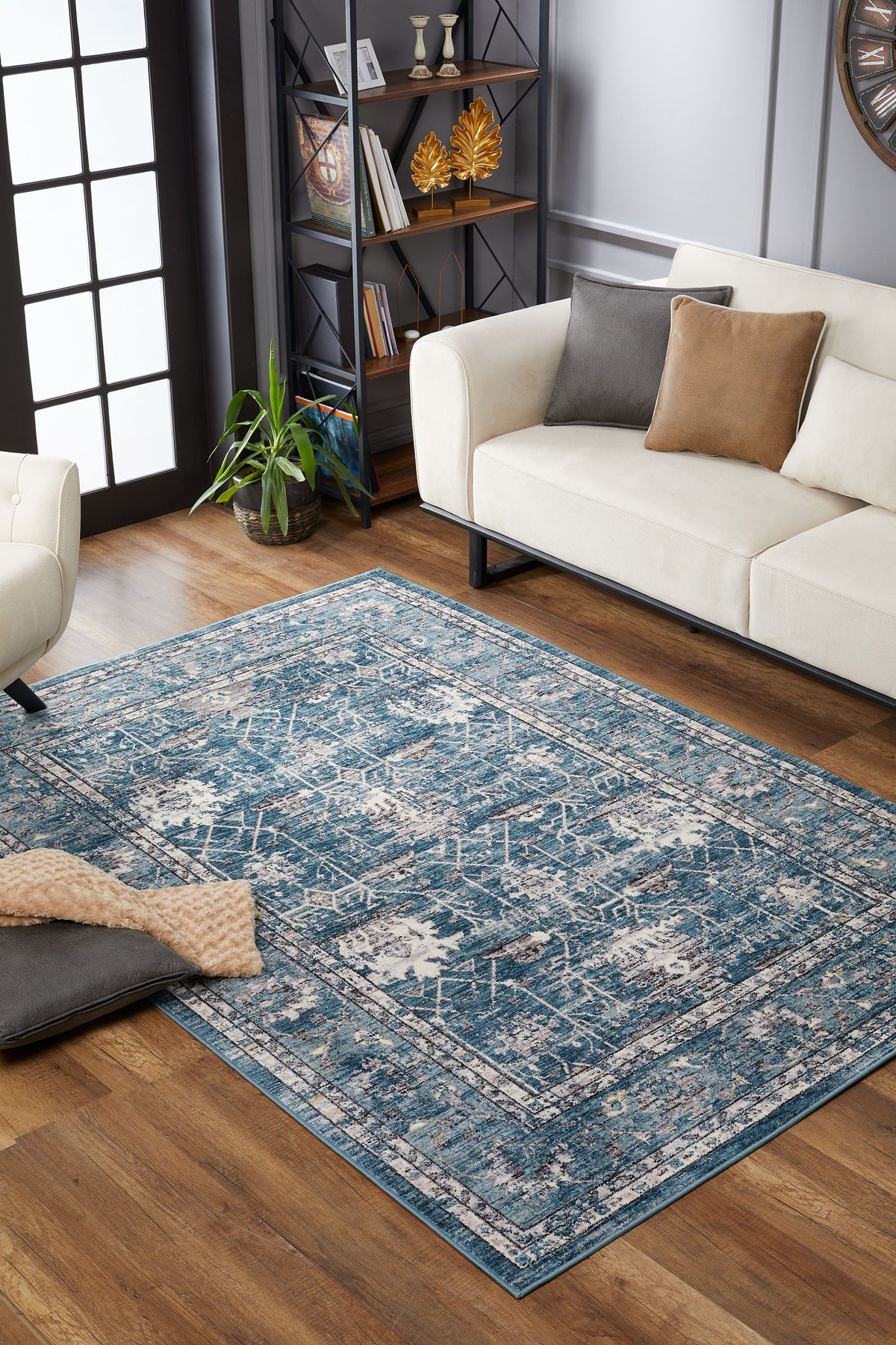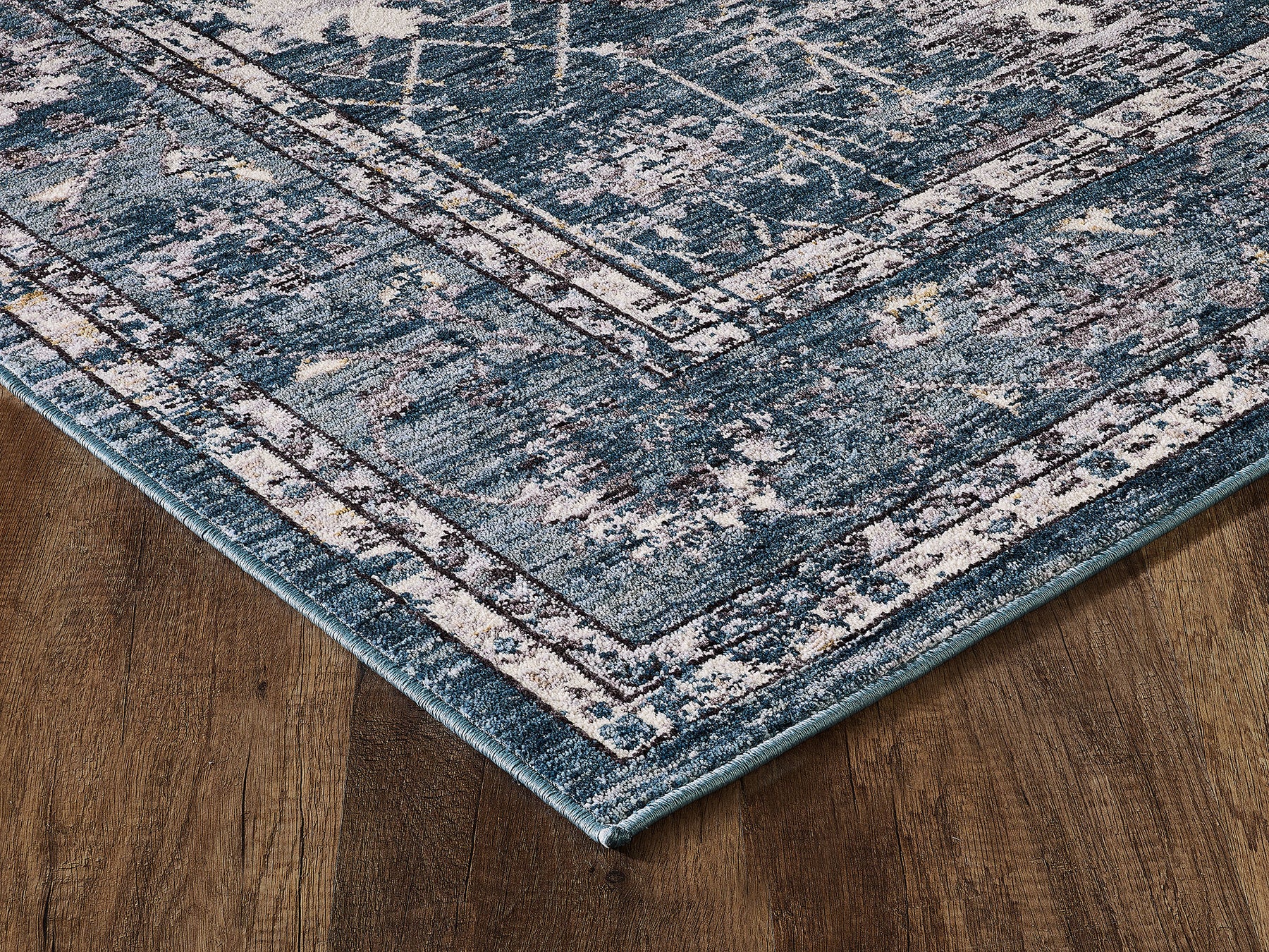 Bring timeless charm and modern elegance into your home with the Seaborn 102 rug. Featuring a soft blue base layered with distressed ivory, grey, and golden accents, this rug combines classic medallion patterns with a contemporary weathered finish. Crafted from durable polypropylene, it offers a dense, low-pile construction that is easy to clean and built to withstand everyday life.